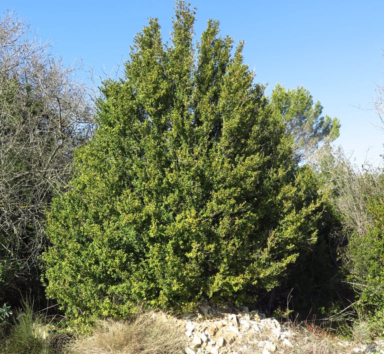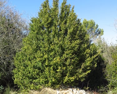 De la famille des genévriers, le Cade pousse dans la région méditerranéenne, tandis que le genévrier commun ( Juniperus communis) pousse en montagne. Le Cade (genévrier de Cade ou Juniperus oxycedrus) anti-mythe purifie, assainie et élimine les vibrations négatives. Mais il est aussi "anti-mite", insensible à l'attaque d'insectes ou à la pourriture.