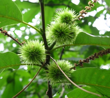 Vertus médicinales :Le chataîgnier est utilisé pour lutter contre l'anémie, la coqueluche, la toux, les diarrhées et les fièvres. On conseille les châtaignes comme reminéralisant et tonique ( favorable à la circulation sanguine).